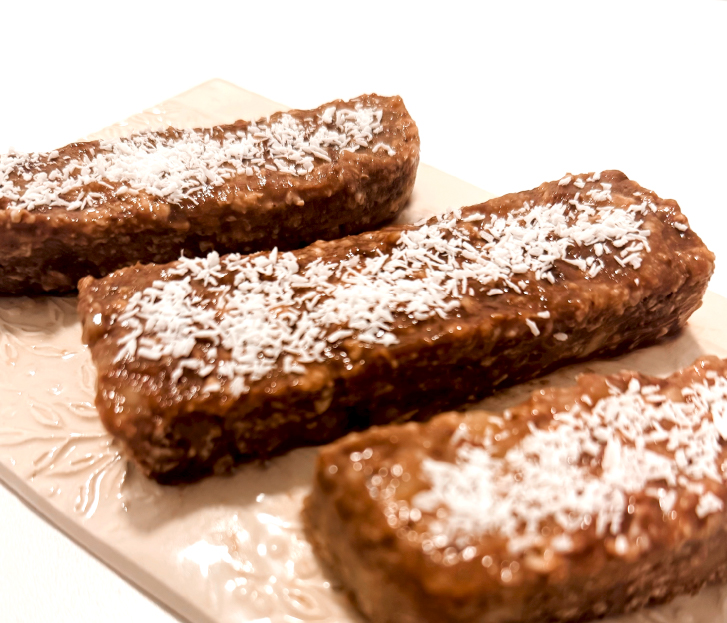 Cortá en porciones y espolvoreá tus barritas coco rallado por encima. ¡Bonus! Las que no consumas en el momento guardarlas nuevamente en el freezer.